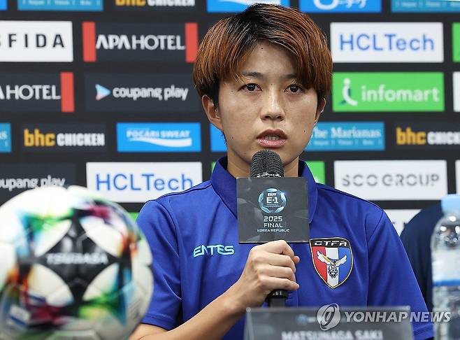 (용인=연합뉴스) 홍기원 기자 = 8일 경기도 용인미르스타디움에서 열린 2025년 동아시아축구연맹(EAFF) E-1 챔피언십(동아시안컵) 여자부 공식 기자회견에서 대만 마쓰나가 사키가 취재진 질문에 답하고 있다. 2025.7.8
