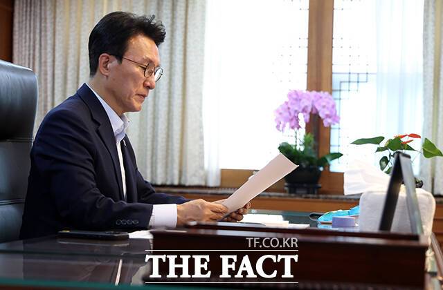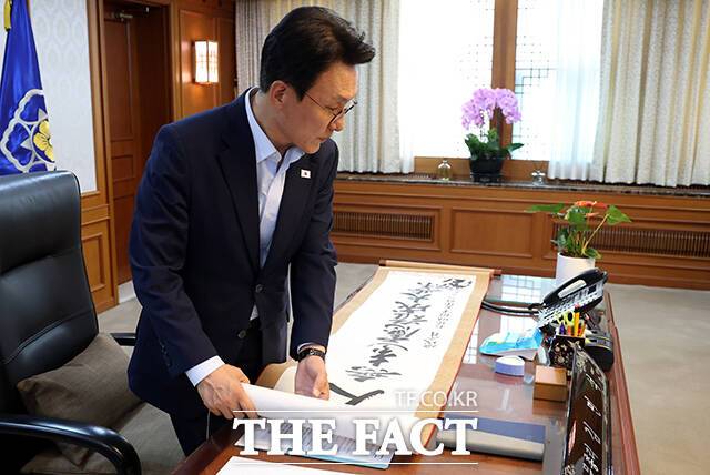 [더팩트ㅣ임영무 기자] 김민석 국무총리가 8일 오후 서울 종로구 정부서울청사 집무실에서 업무를 보고 있다.