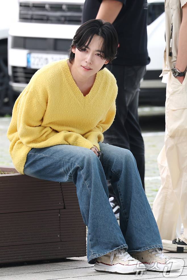 (서울=뉴스1) 권현진 기자 = 위너 김진우가 라디오 ‘컬투쇼’를 위해 8일 서울 양천구 SBS 방송센터에 도착해 인사를 하고 있다. 2025.7.8/뉴스1