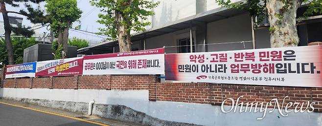 | ▲ 공무원노조는 경남 고성군 한 면에서 벌어진 악성민원을 비판하는 내용의 펼침막을 거리에 내걸었다. |