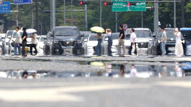 ▲ 8일 폭염 경보가 발효 중인 서울 여의도 여의대로에 아지랑이가 피어오르고 있다.