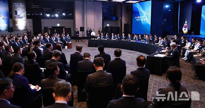 [서울=뉴시스] 최동준 기자 = 이재명 대통령이 8일 서울 용산구 그랜드 하얏트 서울에서 열린 제1회 방위산업의 날 토론회에서 발언하고 있다. (대통령실통신사진기자단) 2025.07.08. photocdj@newsis.com