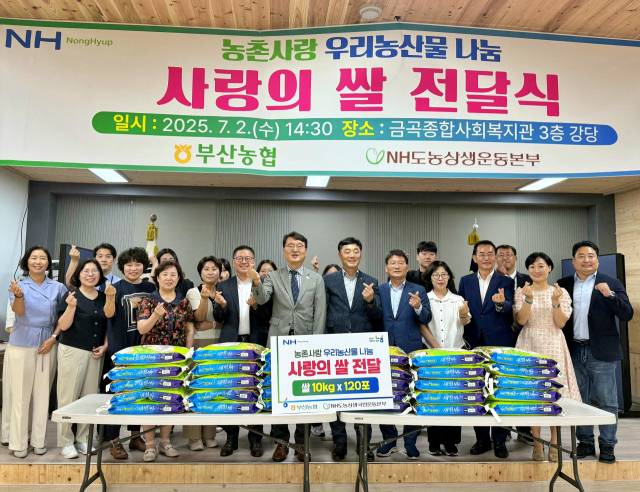 부산농협(본부장 이수철)은 지난 2일 부산 북구 금곡종합사회복지관에서 ‘사랑의 쌀 전달식’을 열고, 가락농협 쌀 1200kg를 복지관 4곳에 기부했다.