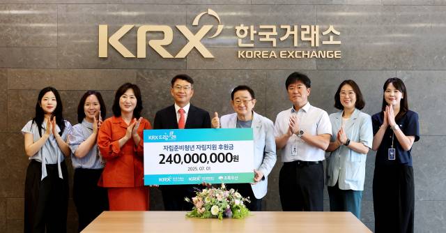 한국거래소(이사장 정은보)는 지난 1일 부산 본사에서 부산 지역 자립준비청년들을 돕기 위한 ‘KRX 드림나래’ 후원금 2억 4000만 원을 초록우산 부산지역본부에 전달했다.