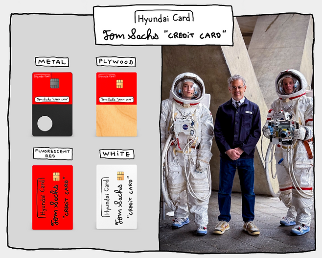 현대카드 관계자는 "현대카드의 철학을 잘 이해하는 아티스트인 톰 삭스와의 협업을 통해 회원들의 카드 사용 경험을 차별화할 것으로 기대된다"며 "지갑에서 신용카드를 꺼내는 순간을 다시 한번 특별하게 만들어줄 수 있을 것"이라고 말했다.