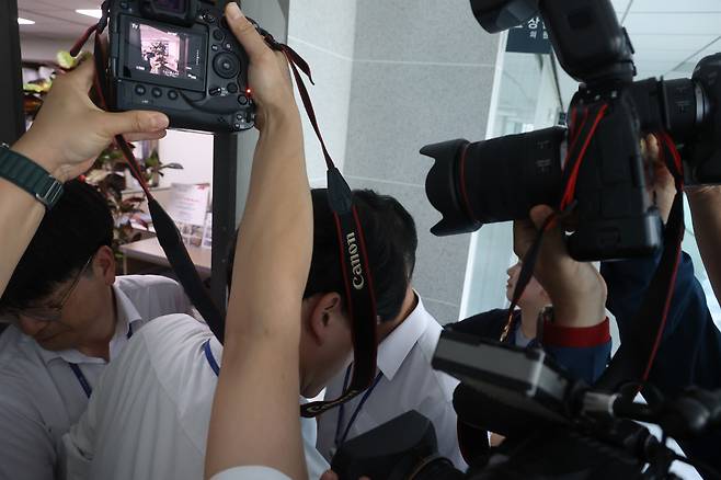 | ▲ 김건희 여사 관련 '공천개입 의혹'을 수사하는 민중기 특별검사팀이 윤상현 국민의힘 의원의 자택 등 10여 곳을 압수수색에 나선 가운데 8일 오후 서울 여의도 국회 윤 의원실에서 국회 사무처 직원들이 나오자, 사진기자들이 내부를 취재하고 있다. |