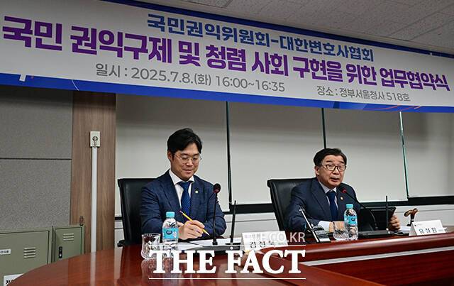 유철환 권익위원장은 "오늘 대한변협과 맺는 협약은 국민의 권리를 지키고 사회 정의를 구현한다는 공동의 사명감을 가진 두 기관이 협력의 뜻을 모으는 의미 있는 자리"라며 "이번 협약이 우리 사회에 공정과 정의가 더욱 튼튼하게 뿌리내릴 수 있는 디딤돌이 되기를 기대한다"고 말했다.