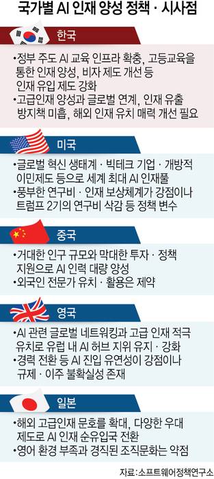 해외 인재 초빙보다 국내에서 전문인력을 집중 양성해야 한다는 의견이 힘을 얻는 이유다. 특히 기술이 산업으로 이어질 수 있는 연결고리를 만들고 AI를 제대로 개발·활용할 수 있는 전문인력을 양성하기 위해 수요에 기반한 국가 차원 교육과 연구개발(R&D) 시스템을 정비해야 한다는 목소리가 크다.