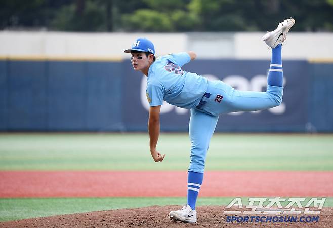 8일 서울 목동구장에서 열린 제80회 청룡기 고교야구선수권 대회 및 주말리그 왕중왕전 서울고와 부산고의 8강전. 부산고 하현승이 5회말 실점 위기에서 구원 등판해 투구하고 있다. 목동=정재근 기자 cjg@sportschosun.com/2025.7.8/