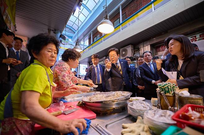 | ▲ 이재명 대통령이 6월 20일 울산 울주군 언양알프스시장을 방문하고 있다. |