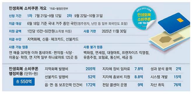 정부가 오는 21일부터 신청을 받는 '민생회복 소비쿠폰' 사업의 행정 비용 예산으로 550억원을 책정하자 과도하다는 지적이 나오고 있다.