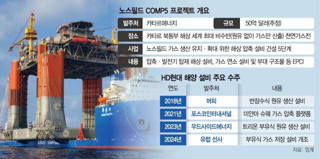 8일 업계에 따르면 카타르 국영 에너지 업체인 카타르에너지가 최근 공고한 노스필드 확장 개발 프로젝트 관련 5차 해상 가스 압축 설비(COMP5) 사업 입찰에 HD현대중공업을 비롯해 글로벌 EPC 업체 4곳이 기술제안서를 제출했다.