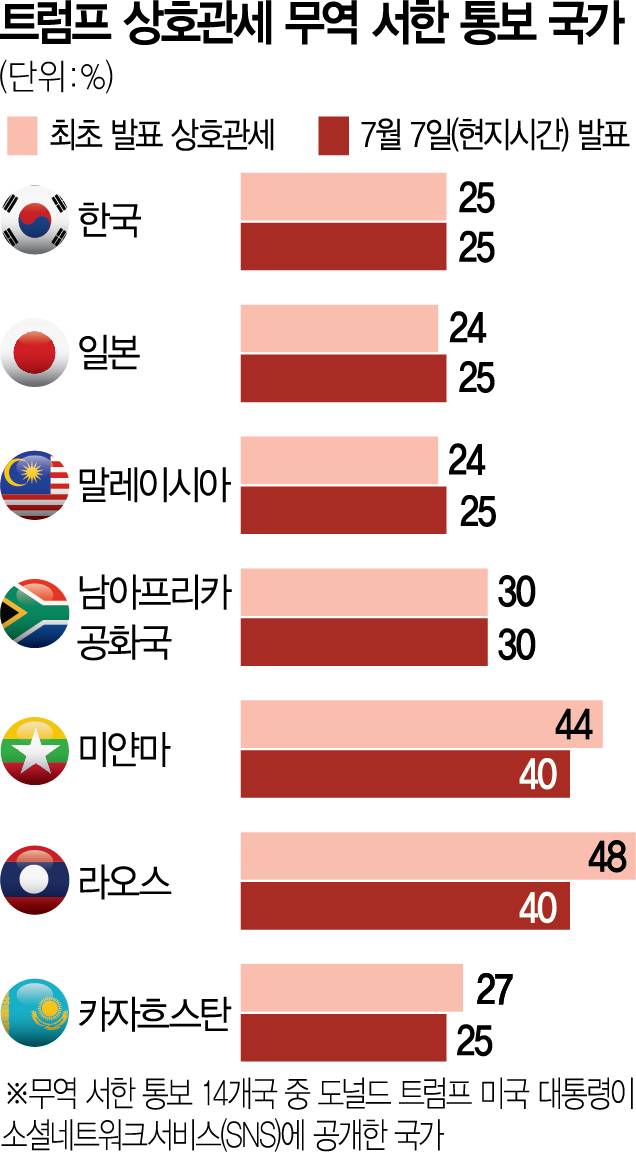 트럼프 대통령이 보낸 서한 곳곳에서는 강경한 분위기가 감지된다. 트럼프 대통령은 “25%라는 숫자는 귀국과의 무역적자를 해소하기 위해 필요한 수준에 크게 못 미치는 수치라는 것을 알기 바란다”고 적었고 “만약 한국이 대미 관세를 올리기로 결정하면 얼마를 올리든 그 수치에 25%가 추가될 것”이라는 경고도 잊지 않았다.