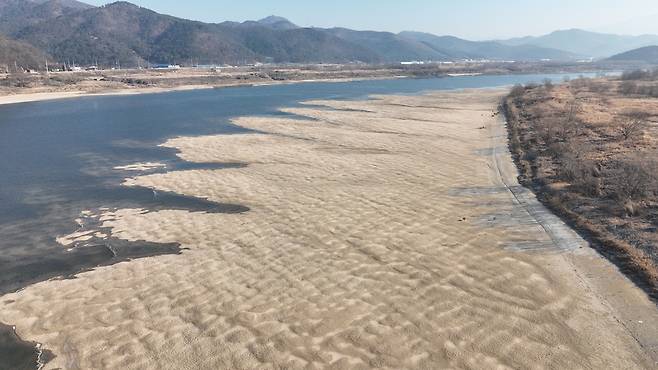 | ▲ 합천창녕보 개방으로 드러난 낙동강 모래톱. 보를 열면 이런 아름다운 모래톱이 드러난다. |