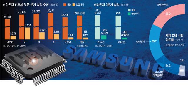 파운드리·시스템LSI 사업부는 이번 분기에도 2조 원 안팎의 적자를 기록한 것으로 보인다. 파운드리 사업부는 닌텐도 스위치2에 들어가는 핵심 칩을 8㎚(나노미터·10억분의 1m) 공정으로 만들고 시스템LSI사업부는 모바일용 애플리케이션프로세서(AP) ‘엑시노스 2500’을 신규 폴더블 폰 갤럭시 Z플립7에 공급했지만 대형 고객사 수주에서 뚜렷한 성과를 내지 못하면서 수 분기째 적자를 이어가고 있다.