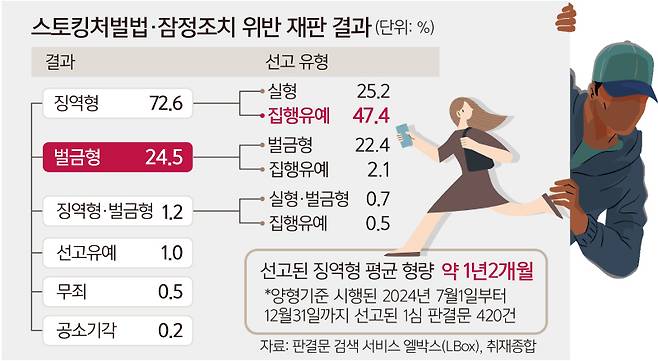 [단독] 스토킹 처벌 여전히 솜방망이… ‘접근금지’ 어겨도 절반은 ‘집유’
