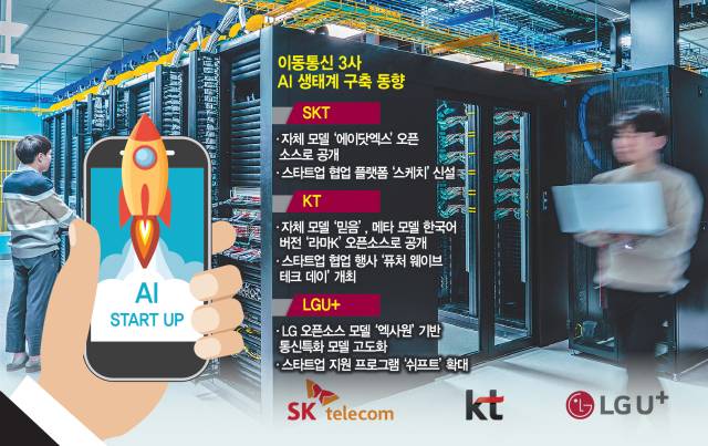 이동통신사들이 인공지능(AI) 생태계 강화를 위해 우군이 될 스타트업 확보 경쟁에 나섰다. AI 모델을 외부 개발자들도 쓸 수 있게 개방하는 한편 스타트업들과의 결속을 강화할 수 있는 프로그램을 늘리고 있다.