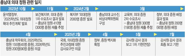 당시 충남대는 정부의 의대 증원 수요조사에서 전국 최대 규모의 증원안을 제출했다. 의대 정원이 110명인 충남대는 2023년 11월 보건복지부 1차 수요조사에 정원 410명(300명 증원)안을 제출한 것으로 알려졌다. 복지부는 이 같은 수요조사 결과를 토대로 “2025학년도 전체 의대 증원 수요는 최소 2151명에서 최대 2857명으로 나타났다”며 의대 증원 2000명 추진에 본격 시동을 걸었다. 2024년 2월 교육부 2차 수요조사에서는 정원 300명(190명 증원)안을 제출한 것으로 전해졌다.