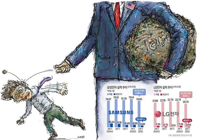 도널드 트럼프 미국 대통령이 한국산 수입 제품에 부과하기로 한 25%의 상호관세가 아직 시작되지도 않았는데, 삼성·LG전자를 비롯한 주요 기업들이 2분기에 부진한 성적표를 받았다. 철강과 알루미늄, 자동차 등에 부과한 품목관세만으로도 휘청이는 모양새다.