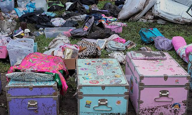 | 주인 잃은 물품 미국 텍사스를 덮친 급류성 홍수로 100여명이 목숨을 잃은 가운데 7일(현지시간) 가장 많은 희생자가 발생한 ‘미스틱 캠프’ 장소에서 주인을 잃은 가방과 물품들이 놓여 있다. 헌트=로이터연합뉴스 |