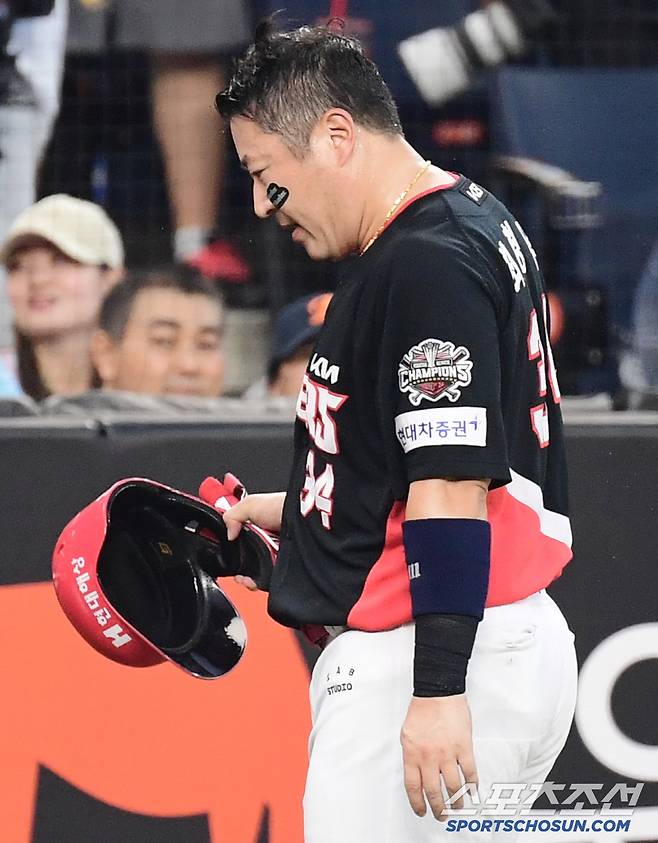 8일 대전 한화생명 볼파크에서 열린 한화와 KIA의 경기. 3회 1사 1루. 오선우 2루타 때 3루까지 내달린 최형우가 자진 교체되고 있다. 대전=송정헌 기자songs@sportschosun.com/2025.07.08/