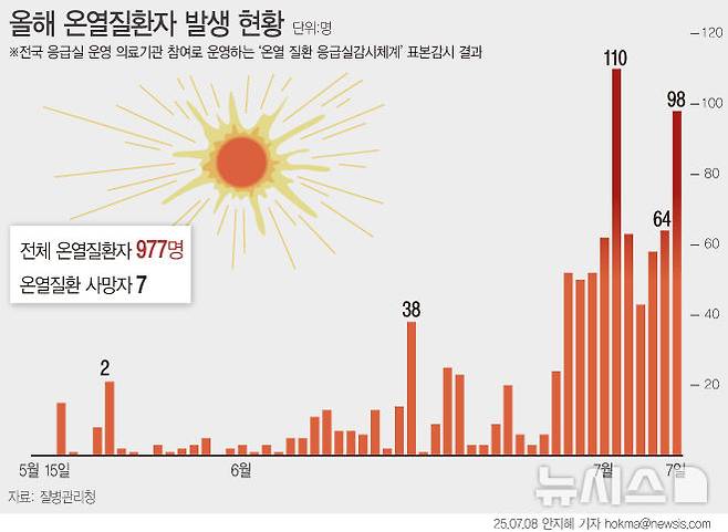 [그래픽] 찜통더위에 온열질환자 천명 육박…작년 환자 2배