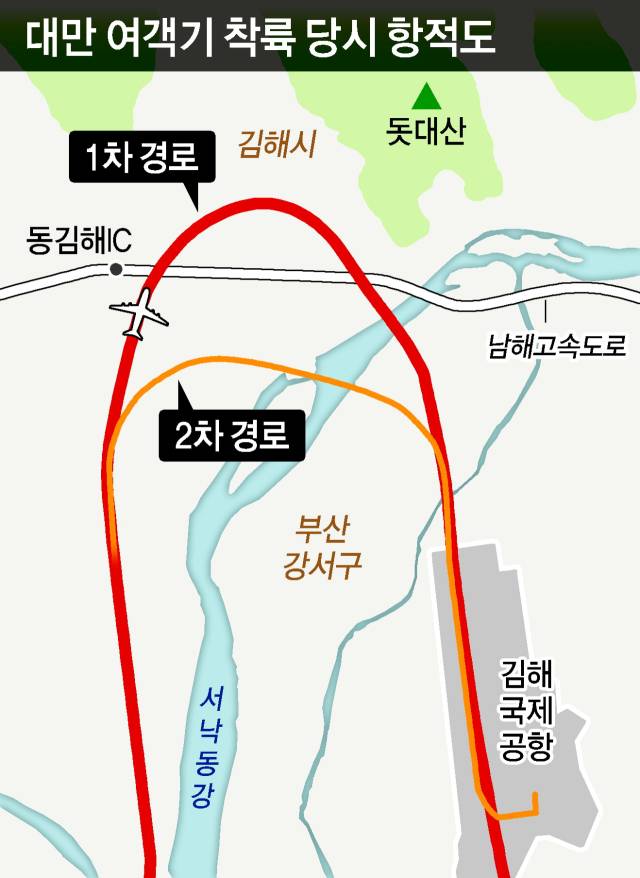 지난달 25일 부산 김해국제공항 활주로에 접근하던 대만 여객기가 정상적인 경로를 벗어나 돗대산 방향으로 붙어 선회하는 사고가 발생했다. 최근 활주로 오착륙 등 자칫하면 참사로 이어질 수 있는 사고들이 이어지는 가운데 대만 현지 언론에서 “2002년 중국 민항기 사고가 되풀이될 뻔했다”고 보도했다.