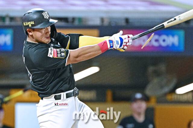[MD포토] 안현민 '스윙에 방망이가 못 버티네'