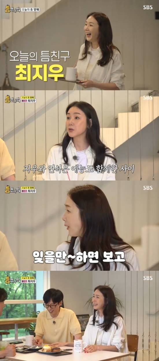8일 방송된 SBS 예능 프로그램 '틈만나면'에서는 '틈 친구'로 최지우가 출연해 '틈 주인'과 만나 이야기를 나누며 행운을 선물했다.