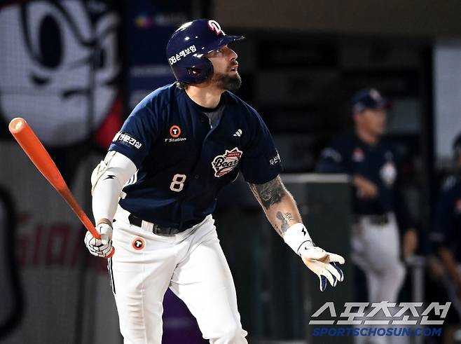 8일 부산사직야구장에서 열린 두산과 롯데의 경기, 9회초 두산 케이브가 솔로홈런을 치고 있다. 부산=허상욱 기자wook@sportschosun.com/2025.07.08/