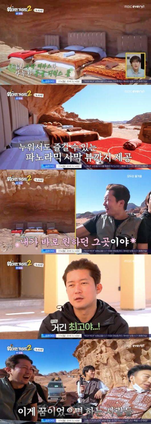 8일 방송된 MBC에브리원 '위대한 가이드2'에서는 박명수, 김대호, 최다니엘, 이무진 '사형제'가 요르단의 '와디 럼' 사막에서 보내는 잊지 못할 하룻밤이 공개되었다.