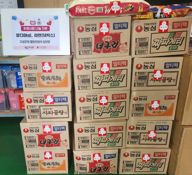 고성군청 열린민원과 지적담당 김인한은 이번 7월 인사를 맞아 화환 대신 지인들이 보낸 쌀(30kg)과 라면(14박스) 물품을 기탁했다.
