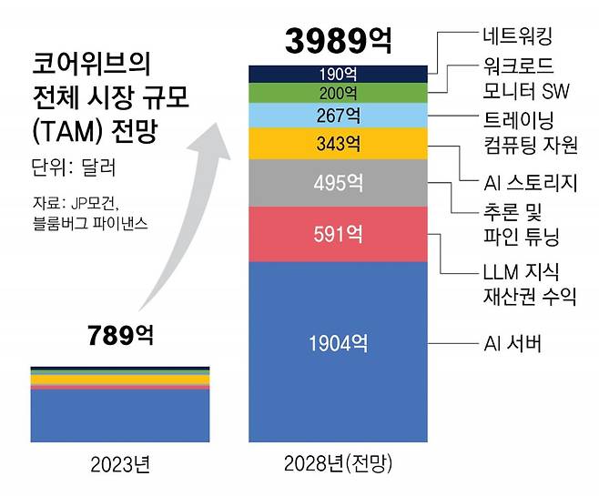 성장의 이면에 특정 고객에 매출이 쏠려 있다는 우려도 있다. 2024년 매출에서 MS 등 상위 두 고객이 전체의 77%를 차지했다. 주요 고객사들의 전략 변화도 위험 요소다. 오픈AI는 최근 자체 데이터센터 구축을 검토하고 있고, MS도 AI 인프라 자체 구축에 투자를 늘리고 있다. JP모건은 “장기적으로는 고객 기반 다변화가 필수적”이라고 지적했다.
