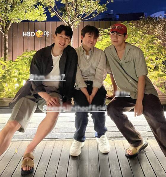 사진 속에는 뷔와 축구 국가대표 손흥민과 피아니스트 조성진의 만남이 담겨있다. 이날 생일을 맞은 손흥민을 축하하기 위해 깜짝 만남을 가진 것으로 보인다.