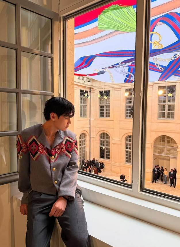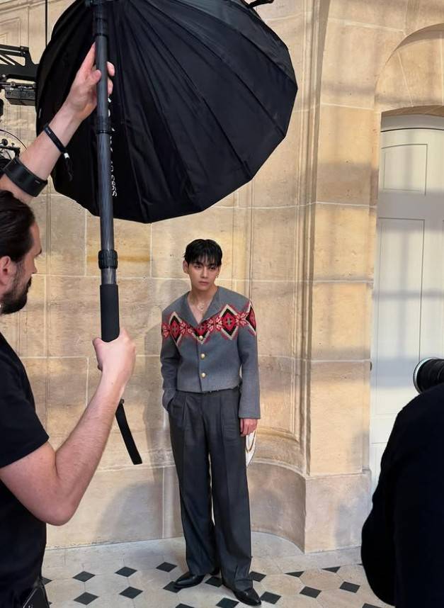 뷔(V)는 8일 자신의 SNS 계정에 파리 스케줄 소화 중의 사진 여러 장을 게시했다. 이날 눈에 띄는 것은 재킷과 팬츠의 톤온톤 매치다. 뷔는 그레이 컬러의 울 재킷과 팬츠로 클래식한 무드를 자아내면서도, 자수 디테일로 포인트를 줬다.