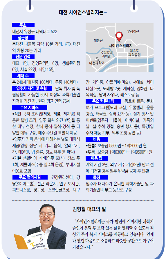 국내 유일의 과학기술인 특화 실버타운인 '사이언스빌리지'는 1970년대부터 '과학 기술의 도시'로 불린 대전 대덕연구단지에 있다.
