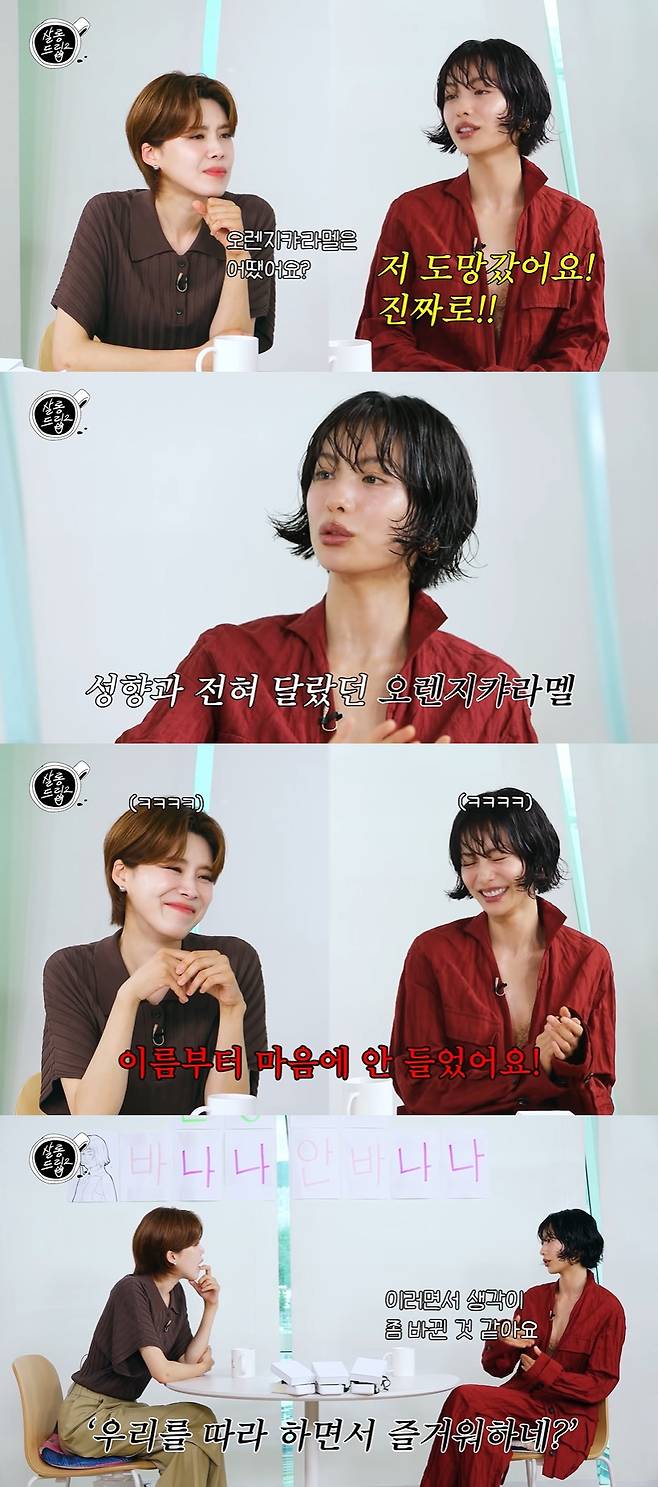 나나는 "도망갔다. 진짜로. 제 취향이 아니다. 애프터스쿨이 제 취향이다. 오렌지캬라멜은 제 취향이랑 전혀 다르고 성격이랑도 전혀 안 맞는다"라고 털어놔 웃음을 안겼다.