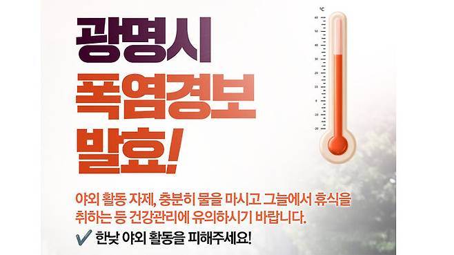 광명시는 도심 온도를 낮추기 위해 살수차를 가동하고, 장애인과 독거노인 등 취약계층의 폭염 피해를 줄이기 위해 방문·전화 관리를 늘렸습니다.