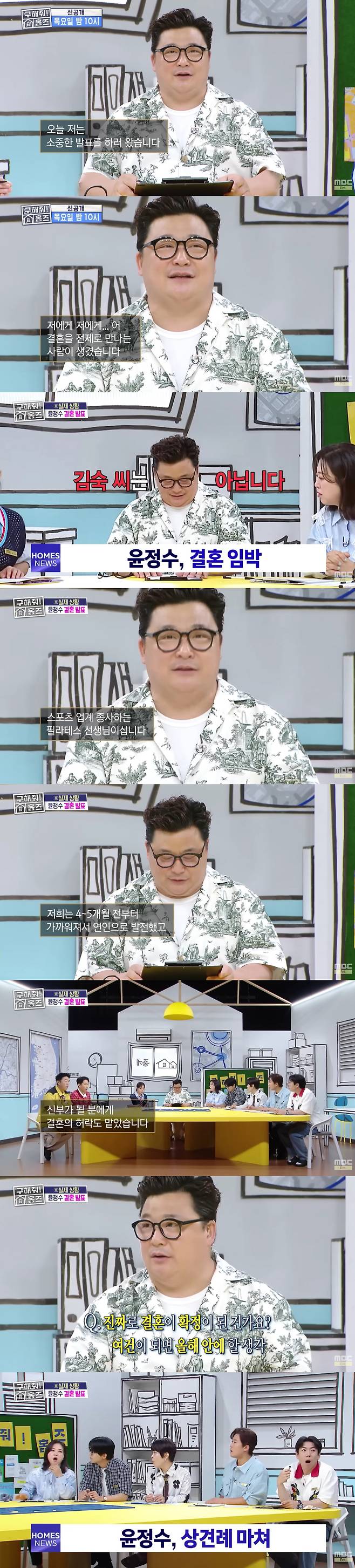 윤정수는 오는 10일 방송되는 MBC '구해줘! 홈즈'에서도 결혼 소식을 전할 예정이다.