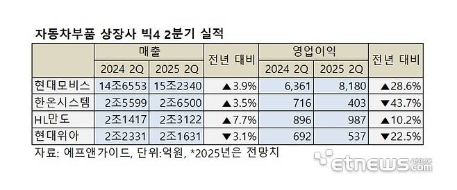 - 車 부품사 빅4, 고관세·전기차 캐즘에 2분기 실적 '희비'