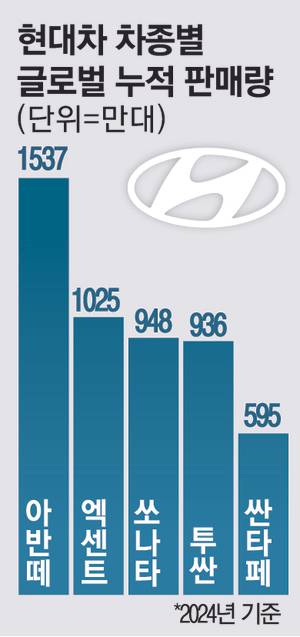 아반떼는 현대차그룹 설립 이후 국내외 시장에서 가장 많이 팔린 베스트셀링카다. 지난해 기준 아반떼 누적 판매량은 1537만대로 엑센트(1025만대), 쏘나타(948만대), 투싼(936만대), 싼타페(595만대)보다 앞섰다.