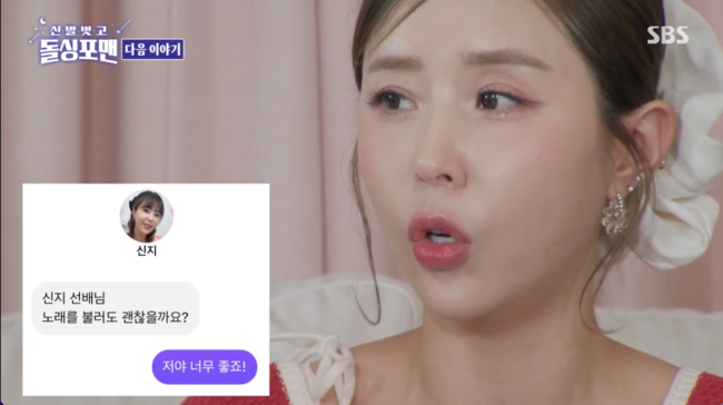 방송 말미 다음 방송 예고편이 공개됐다. 예비 신부 신지는 7살 연하의 남편 문원과 어떻게 시작이 됐냐는 질문에 “DM으로 연락이 왔다. ‘선배님 저도 이 노래를 커버해도 될까요?’ 저는 너무 좋다”라고 설명했다.
