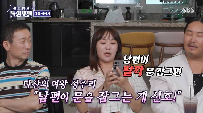 '다산의 여왕' 정주리는 화끈한 부부 금슬 비결을 공개했다. 정주리는 "사랑한 것에 비하면 아이 다섯은 흉년"이라며 남편과의 '사랑 시그널'이 따로 있다고 밝혔다. 남편이 '딸깍' 문을 잠그거나 잠든 아기를 옆으로 밀면 '사랑 시그널'이라고. 이상민 역시 "아내와 사랑 시그널이 있다"고 거들고 나서면서 탁재훈을 열받게 했다.