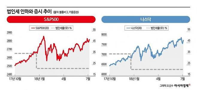 미국 증시가 전 고점을 돌파하며 우상향 흐름을 보이고 있지만, 감세안의 부작용을 우려하는 목소리도 적지 않다. 역사적으로 미국에서 통과된 7번의 감세안은 모두 증시 상승세로 이어졌지만, 단기적으로 변동성 확대가 나타날 수 있어서다.