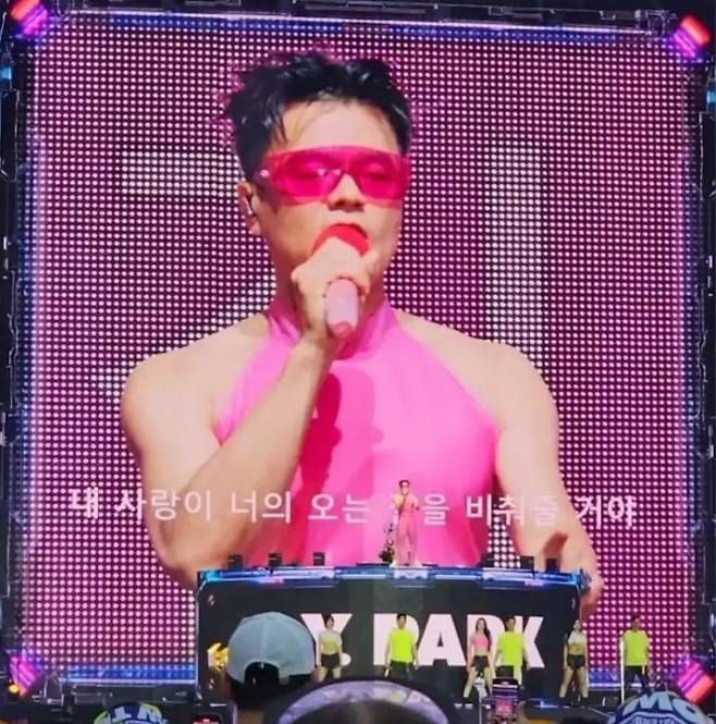 이날 후배 가수 에스파 카리나, 권은비 등이 출연한 '워터밤'에서 뒤지지 않는 존재감을 과시한 박진영은 공연 후 "즐겨주신 모든 분 덕분에 정말 행복했다"는 소감을 남겼다.