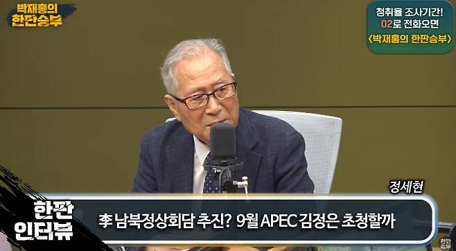 ◇ 박재홍> CBS 박재홍의 한판승부 2부 문을 열었습니다. 이번 시간에는 한반도 정세와 외교 안보 이슈를 짚어보겠습니다. 이재명 정부는 한반도 긴장 완화와 남북 관계 복원을 최우선 대북 정책으로 내세우고 있는데요. 이 시간에는 김대중, 노무현 정부에서 통일부를 이끌었던 분이십니다. 정세현 전 통일부 장관을 모셨습니다. 장관님 어서 오십시오.