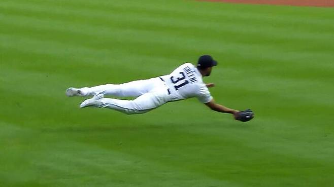몸 던져 공 잡아낸 외야수…mbl 멋진 수비