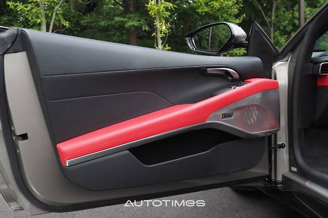 손에 쥐는 맛이 좋은 D컷 스티어링휠은 두 손을 벗어날 수 없게 한다. 여기에 레드 컬러 스포츠 버킷 시트 역시 몸을 정확히 지지한다. 소재는 제법 만족스럽다. 적절한 컬러 믹스매치, 탄탄한 조립, 질 좋은 가죽, 풍부한 케프 사운드 시스템도 인상적이다.