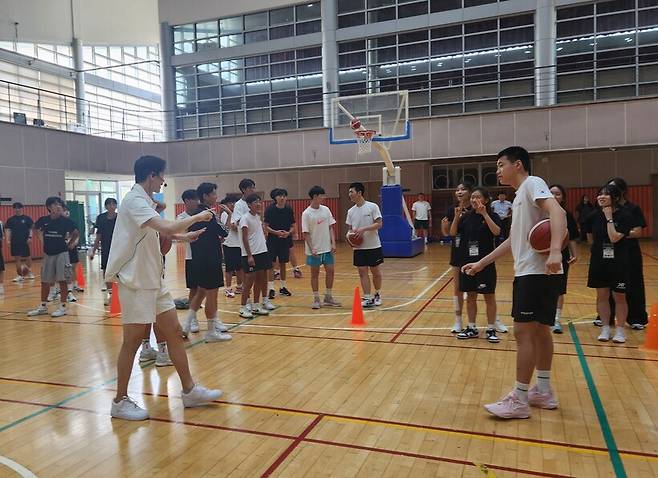 김선형은 8일 인천대 체육관에서 진행된 ‘스포츠 스타와 함께하는 스포츠 세부 프로그램’의 강사로 초대돼 재능 기부를 실천에 옮겼다.