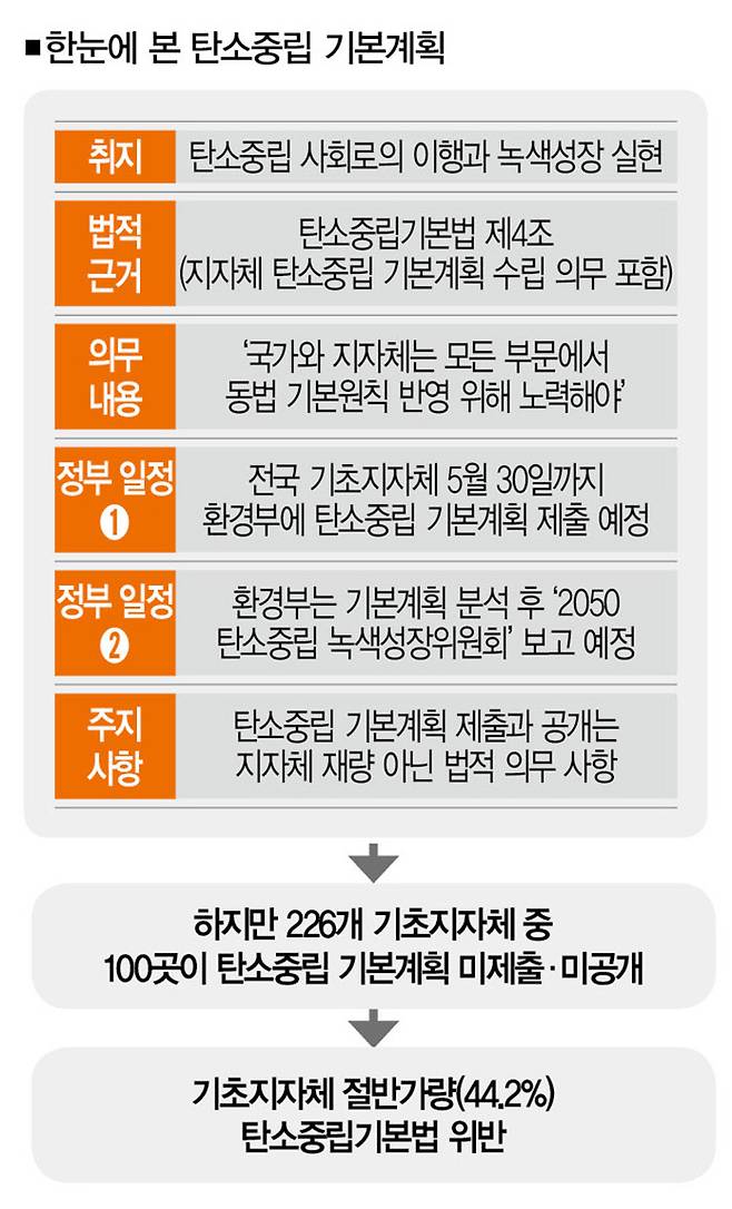 지자체가 탄소중립 기본계획을 수립하고 이를 통해 기후위기 대응 정책을 추진하는 건 재량이 아니라 법적 의무다. 지자체가 탄소중립 기본계획을 수립하고 공개하는 걸 더 이상 지체해선 안 되는 이유다.